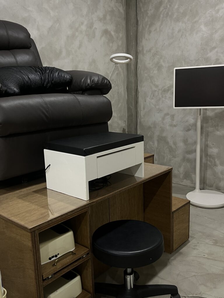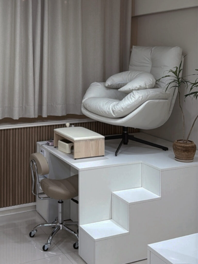 일상의 분주함을 잠시 내려놓고 몸을 맡기는 자리이기에, 무엇보다 변함없는 단단함에 집중했습니다. 지면을 꽉 채우는 안정된 구조는 고객이 발을 내딛는 첫 순간부터 심리적인 안도감을 선사하며, 시술이 진행되는 내내 흔들림 없는 고요를 유지합니다.